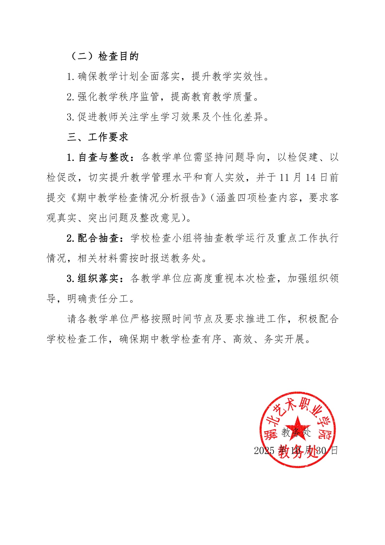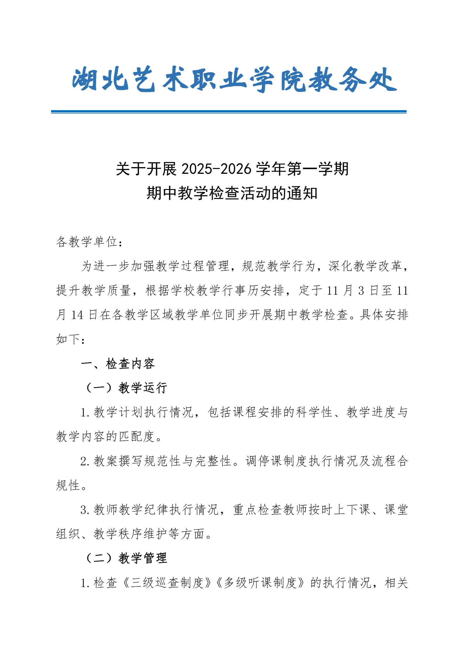 关于开展2025-2026学年第一学期期中教学检查活动的通知